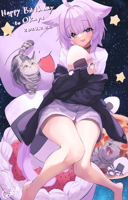 295 1738 おかゆんお誕生日おめでとう!!!!!!🎉 これからもたくさん描くぞ~~~!🥰 #絵かゆ #猫又おかゆ生誕祭2023 23/02/22 08:01