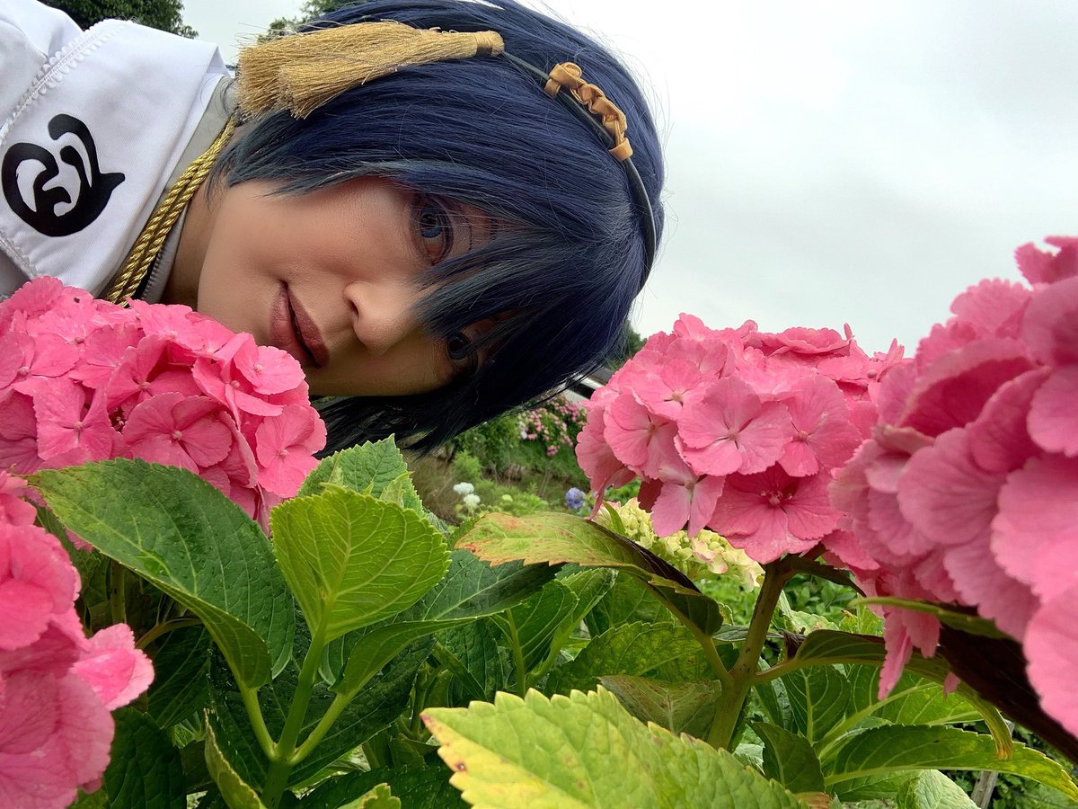 おはようございます❣️ 紫陽花を愛でて 今日も一日(っ*ˊ ᵕ ˋ*c) がんばりますか❣️ #紫陽花 #コスプレイヤー #かざはやの里かっぱのふるさと #かざはやの里 #刀剣乱舞 #三日月宗近 #柳生観光協会prサポーター 📸真理奈さん (tw @dikuraruhaito )