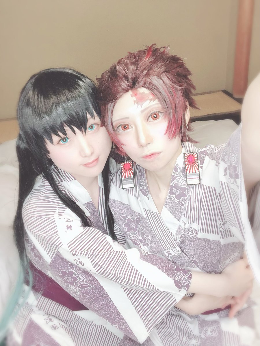 6 65 ⚠️コスプレ捏造 先日アミちゃんと温泉旅館に行ってきて、捏造で時炭の浴衣やってきた😌 楽しかったけど、時間足りなすぎたぁー!! 炭治郎→@kireinapin 無一郎→レキ 20/03/21 20:39