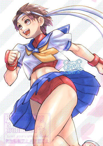 34日目 #格ゲーキャラ描こうぜ ストリートファイターシリーズより、春日野さくらさん。 本日お誕生日との事で🎉ブルマはハイレグじゃない方が好きです。 トリミングなしの大きなサイズはxfolioにて。