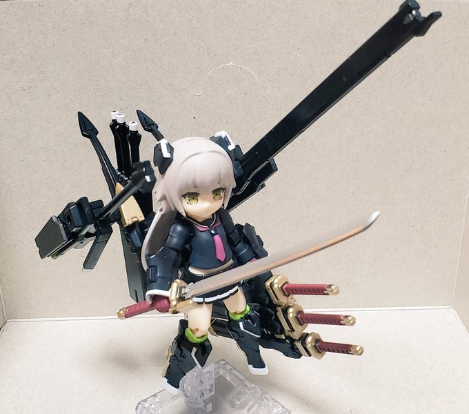 #デスクトップアーミー 完成!! なにこれかわいすぎる… さすがにちょっと高いなと思いましたが…素体のできのよさと、ウイングのように展開する鞘たちがかっこよすぎます 壱ちゃんとのミキシングが楽しすぎます!