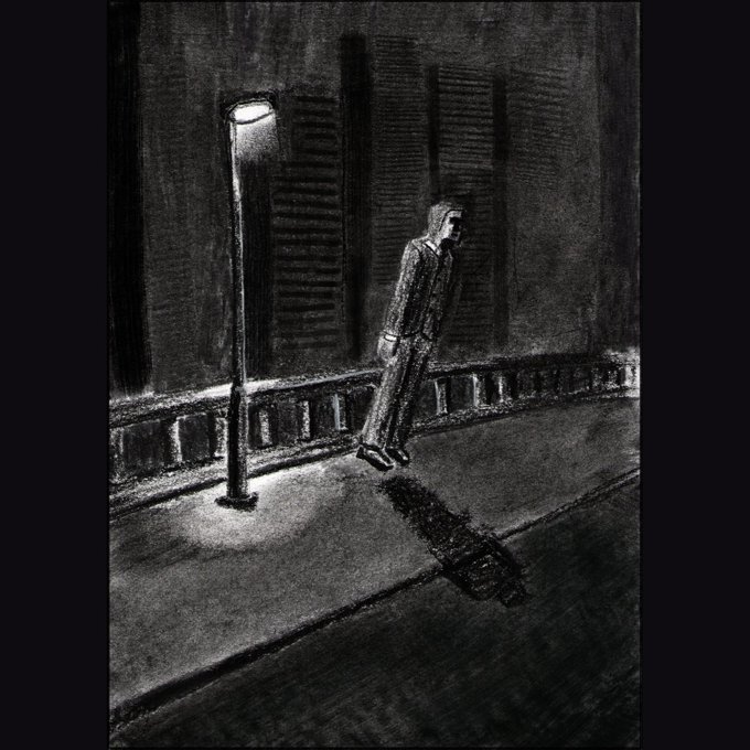 FusainTober jour 3 ou 6 jsp sur le thème du cauchemar (mais aussi "une rue spéciale", 2 en 1) #inktober2021 #inktober2021day6 #illustration
