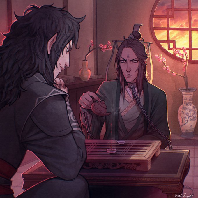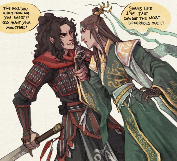 #BingJiuWeek2022 day 5: wild hunts I thought I wouldn’t have the time to draw anything but this prompt was just asking for a Witcher au and I couldn’t resist ;D Bingge as a witcher and SJ as a sorcerer 🤲👀 #svsss #bingjiu #LuoBinghe #shenjiu