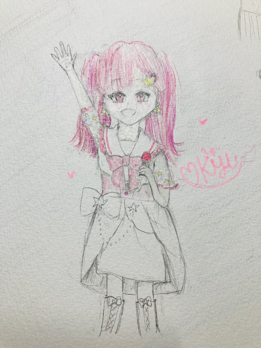 お目を少し変えて、色塗りました! スカートとかは、まだ! 少し見にくいかも… #きゅーぱれっと
