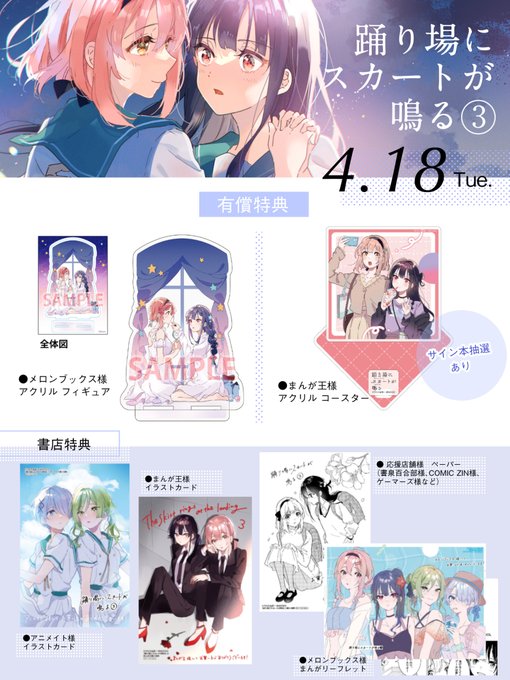 🌟書影と店舗特典一覧🌟 日付変わって4月18日は、踊り場にスカートが鳴る3巻の発売日です! いよいよ夏合宿、大きく変化が訪れる第3巻になります!よろしくお願いします #踊り場にスカートが鳴る