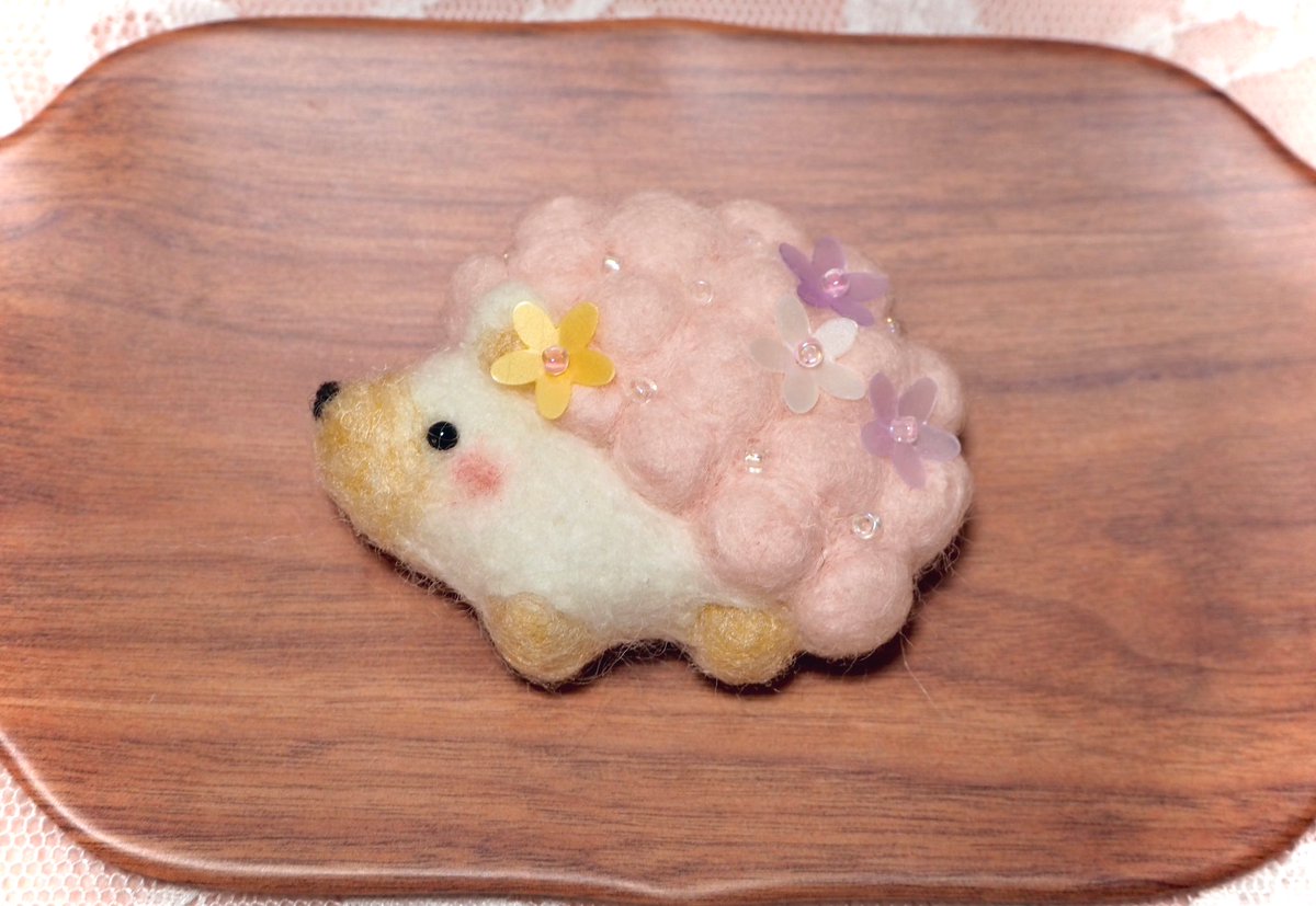 モコモコハリネズミさん🦔💓 お花をつけているよ🌼.* #羊毛フェルト