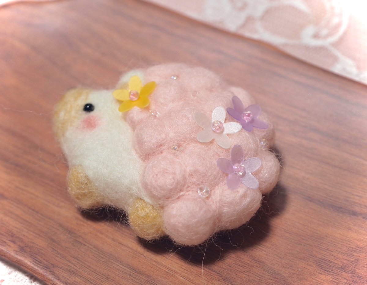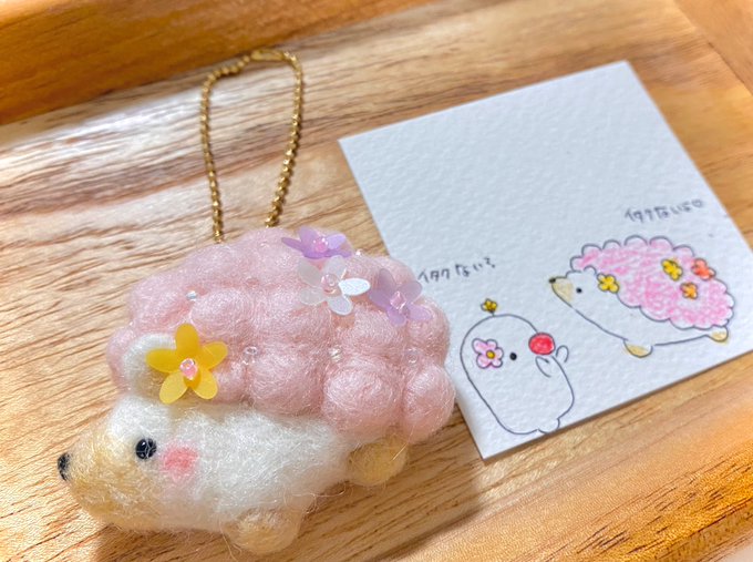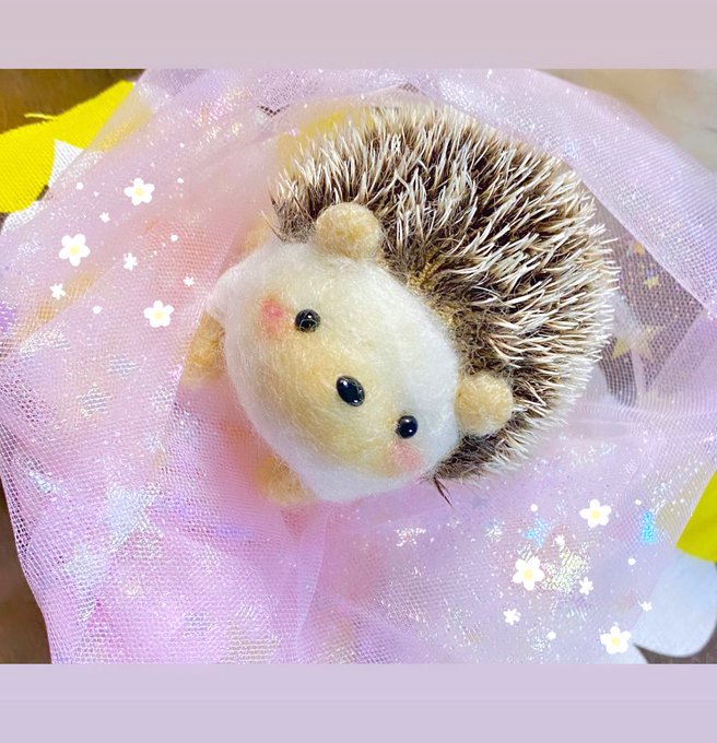 7 48 モコモコハリネズミさん🦔💓 お花をつけているよ🌼.* #羊毛フェルト 22/09/17 17:55