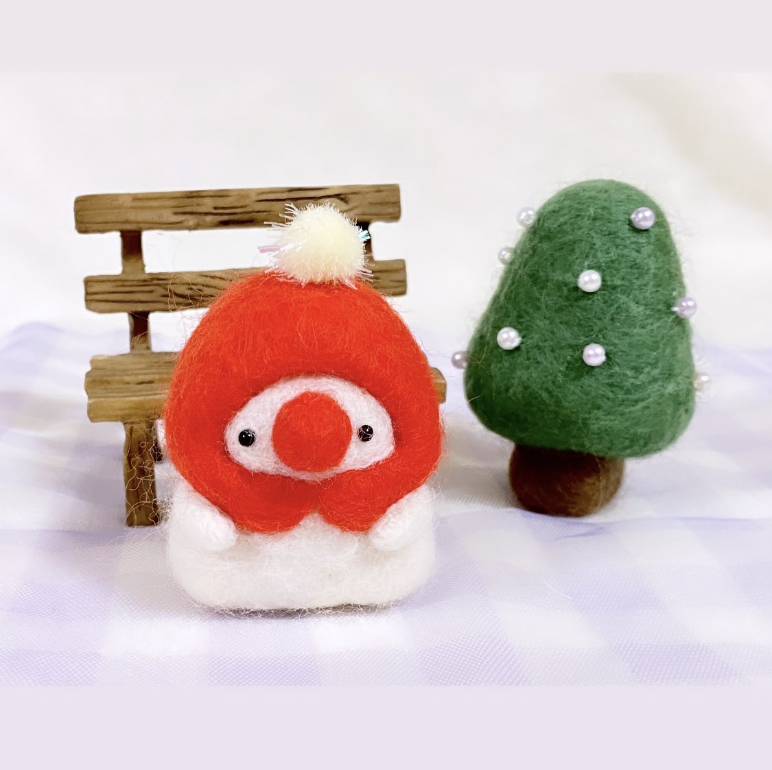 6 22 「赤いお鼻のようせい」 ぽんぽん帽子を被ったちょっと大きい子🌼 キラキラなぽんぽんが付いてるんだよ〜✨️ #IYN #羊毛フェルト 22/11/19 11:26