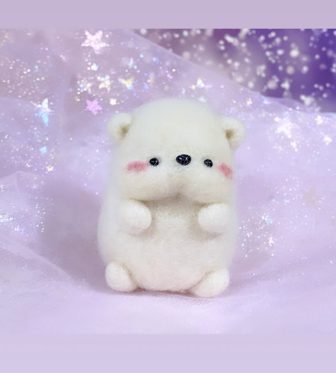 「ぷっくりほっぺたのシロクマ🐻❄️」 柔らかくてほっぺたぷにぷにだよ〜🥰 #羊毛フェルト #ハンドメイド