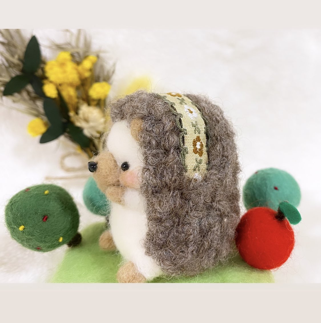 「ふわふわハリネズミ🦔⸒」 オシャレが大好きでカチューシャをしているよ🎀 #羊毛フェルト #ハンドメイド