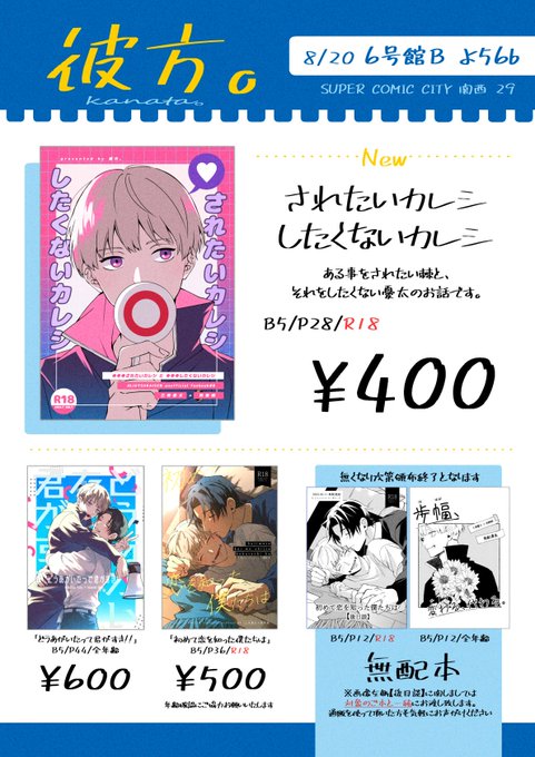 8/20 インテのお品書きと当日飾るポスターです、よろしくお願いいたします🙋 (ポスター貰ってくださる方いらっしゃれば気軽にお声がけください☺️) 新刊のサンプルはコチラです👉pixiv.net/artworks/11064…