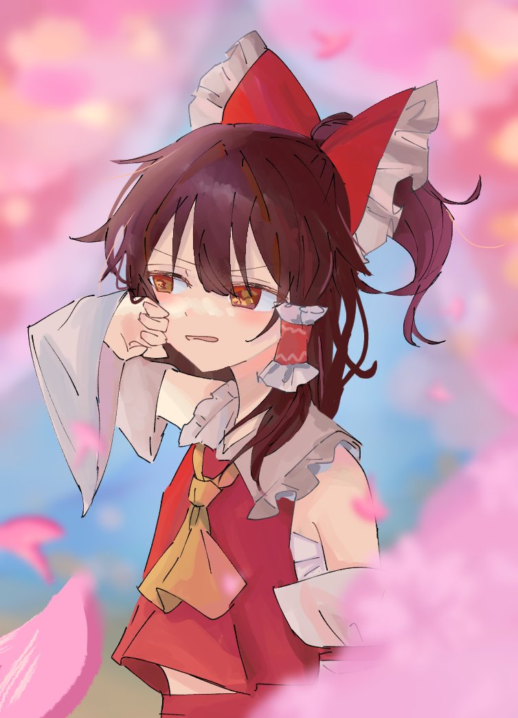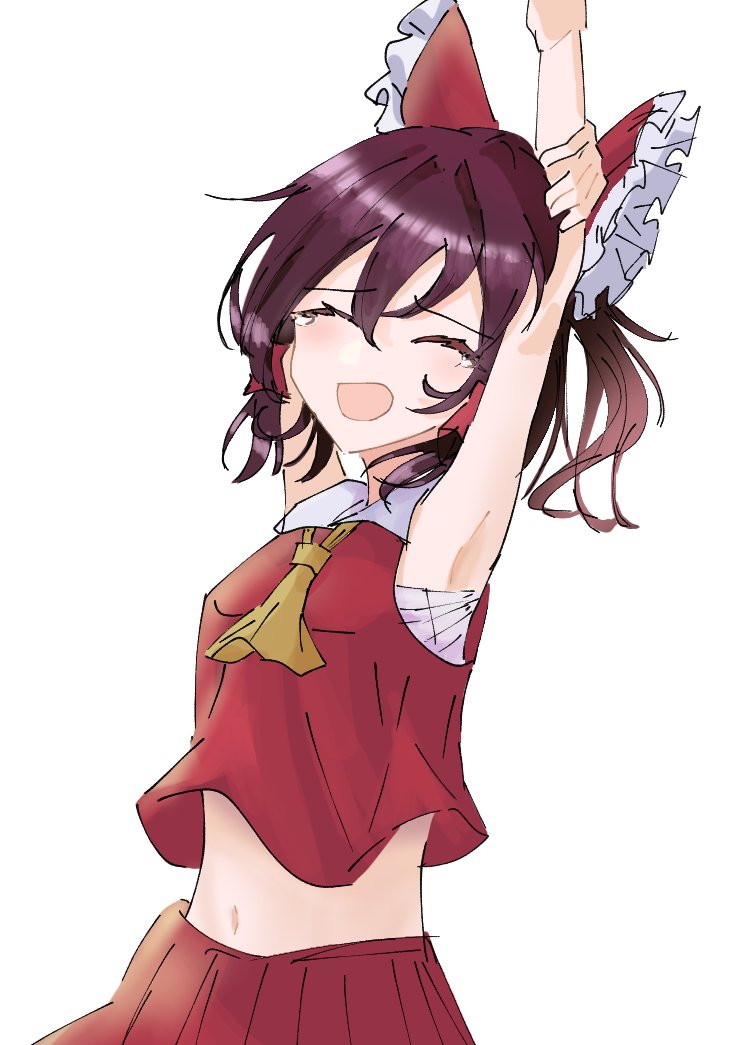 3 146 腕の白い布消えた🫥 #博麗霊夢 #イラスト #絵描きさんフォロバ100 「ふわぁーー………ねむ」 23/04/04 22:11