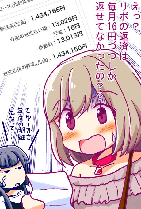 リボ払いの仕組みを全く理解せず 物欲に素直に大学生活を謳歌していた風町さん(20)、黒川さんに諭されようやく事の重大さを把握する の図😳😱🤮