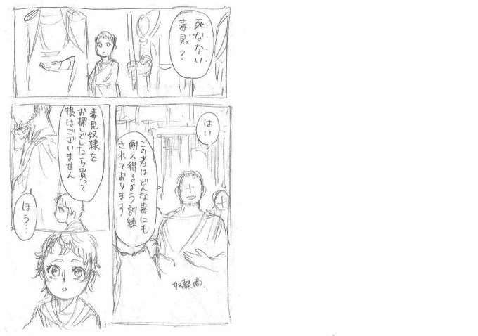 34 82 ローマ行って思い出した「古代ローマ×毒見奴隷」のネーム発掘。大昔のやつなので晒しときます笑(※ネームなので汚い) #麻貴漫画 20/03/03 18:10