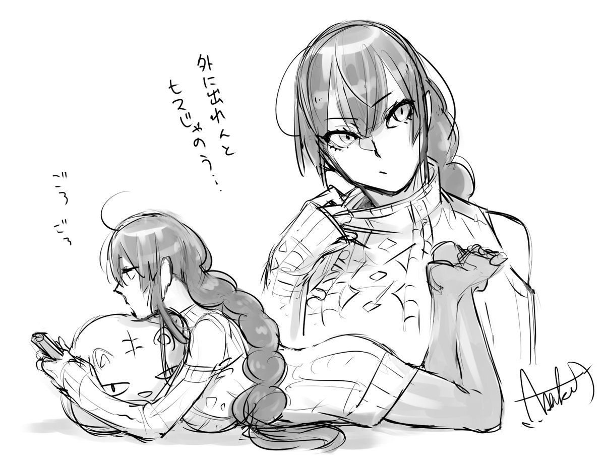 リクエスト落書き。三つ編み萌えそで酒呑と大人いくしま。#鬼哭の童女