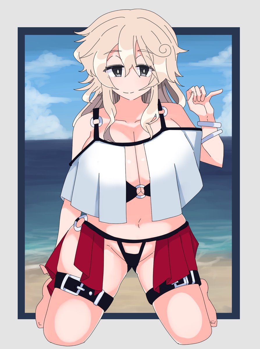水着デーリッチを描かせていただきました! こちらが原寸大です(カード枠で隠れる部分が多いと後から気づいて背景は描きなおしてます) #ざくアクダンゲロス #ざくアクアート twitter.com/ngi754/status/…