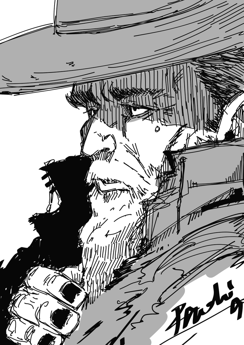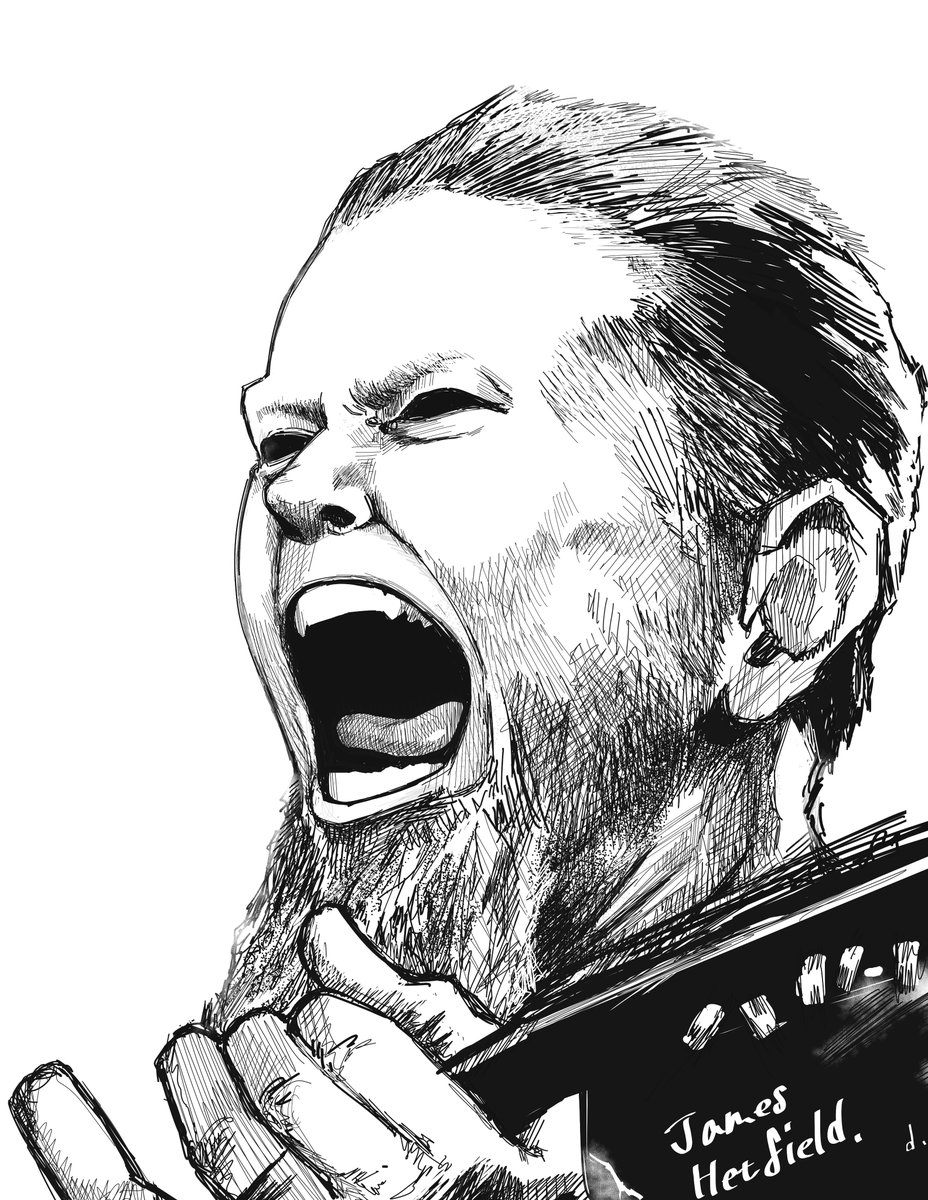 画力上げるために模写しました! メタリカのボーカル、ジェイムスヘットフィールド 描きました デジタルの模写難しすぎないか