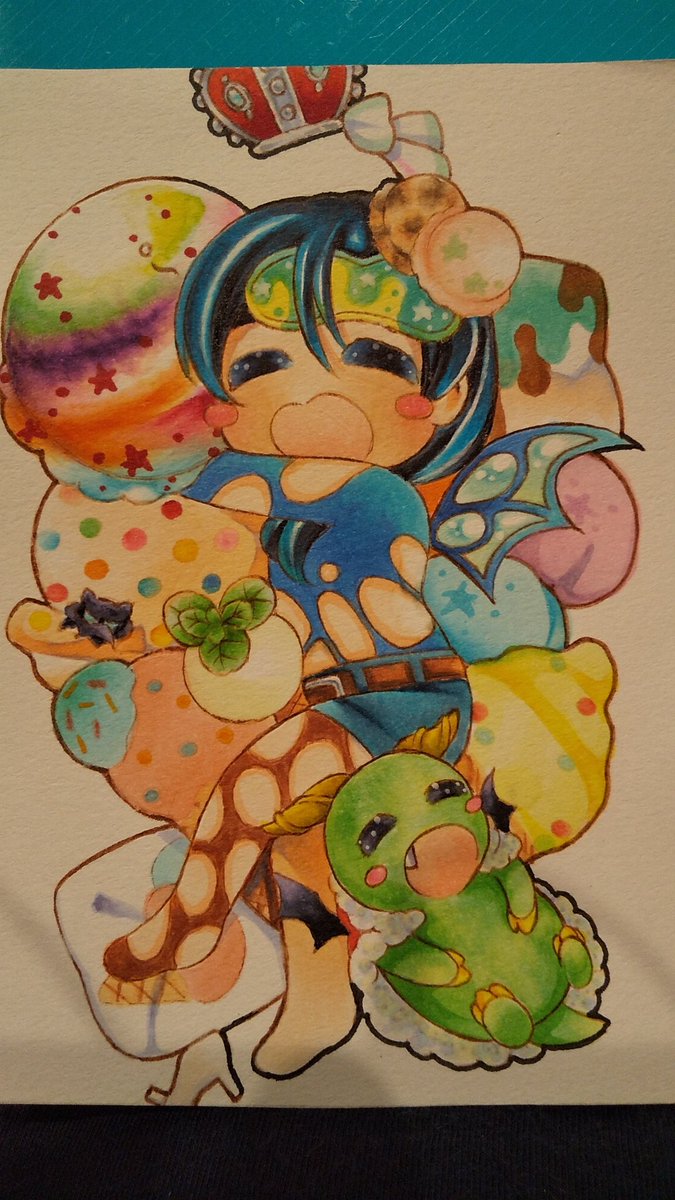 #スイーツの妖精 #コピック ハガキサイズ3枚 🍭🍰🍨