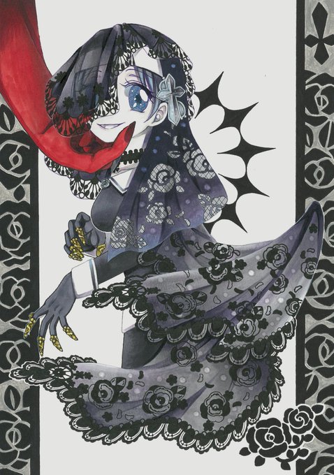 1 3 #コピック 漆黒のシスター 以前アンケートいただいた要素をまとめて描きました💝 ありがとうございます!! 髪短めの編み込み、シスター、ラメ入りの瞳、十字架、チョーカー、ゴシックベール、薔薇、おしゃれな鉤爪 今年最後の描き収めになります✝️ 22/12/31 19:50