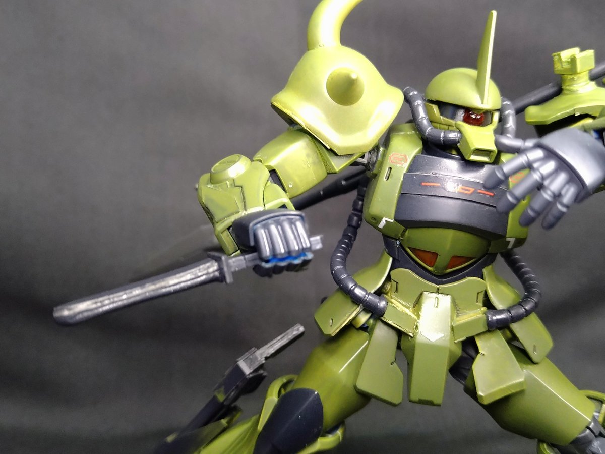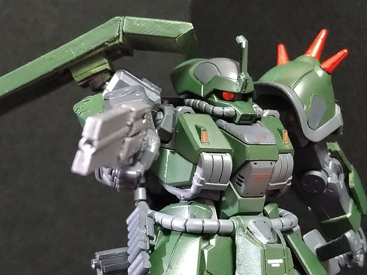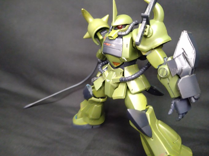 #ガンプラ #ガンプラは自由だ #ガンプラ好きとつながりたい 新年一発目! グフ・ヴェナトル ラテン語で「狩人」の意味を冠したグフ。グフ・ハンターを参考に近接特化&森林カラーで隠蔽力を上げている。槍、ナイフ、ククリナイフ、ショットガン等を使用。