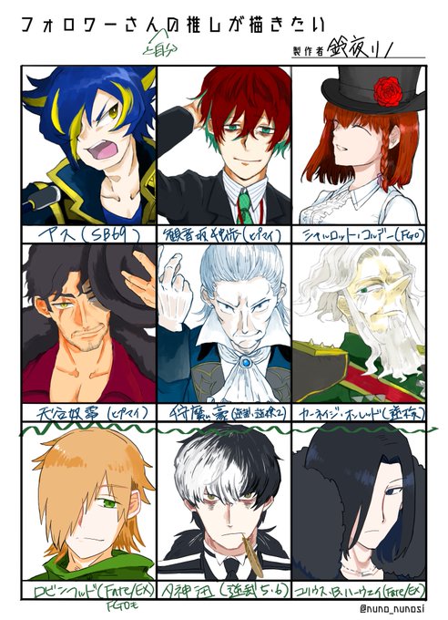 #フォロワーさんの推しが描きたい 上の6人がフォロワーさんの推しなんですけど下の3人はスペースが余ったので描いた我が推しです 描いて描いて~!ってしてくれてホントにありがとうございます へへ (個人宛で送り付けたものから一部修正したり枠入れるにあたってちょっと変えたところとかあります)