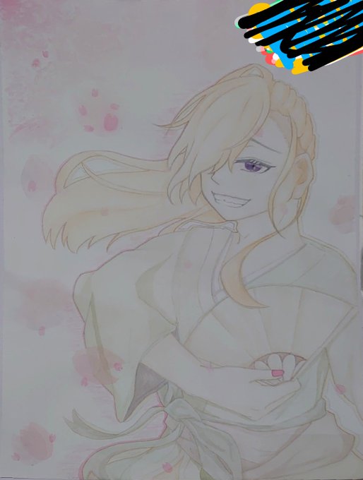 文化祭展示したアナログ(水彩)作品。 背景が適当すぎること、色にメリハリがなさすぎることが反省点です。 題名「落英繽紛(らくえいひんぷん)」 #イラスト #イラスト好きさんと繋がりたい #絵描きさんと仲良くなりたい #絵柄が好みって人にフォローされたい #FYP #illustration 右上は名前隠しです