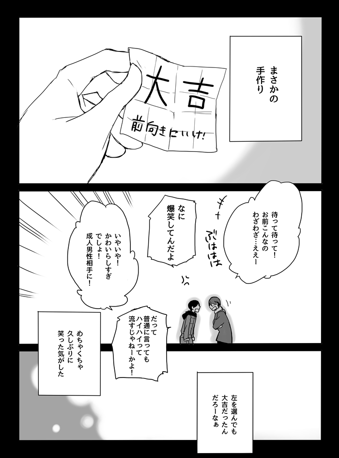 古いまんがですがお正月の話なので再掲します。pixivにも置いてあります。 1/2【6310】あの年の正月【再掲】