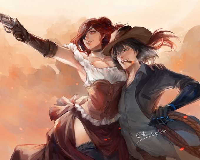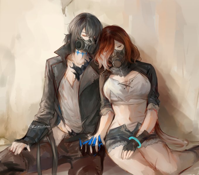 I haven't been feeling too good about my art these days so I've decided to join @ocxcanonweek for the first time featuring Oberon from FGO! Day 1, post-apocalypse AU, holding hands #ocxcanonweek