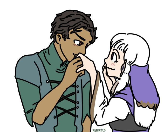 Late Day 3 art for #CysitheaWeek2020 ! Prompt was "Confession" and Claude totally told him to do this as a joke, but Cyril doesn't get jokes.