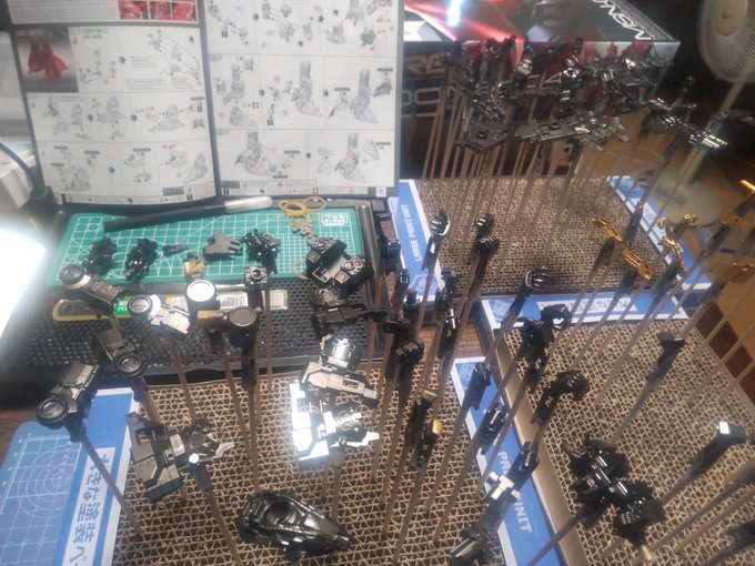 組み立て終わり。 頭部はクリアパーツがあるのでトップコートの後に取り付け。 1回作ってるのにこれどうやるんだっけ?(゚д゚)?みたいな所が多かった。 流石はRGである。 私の記憶力が無いわけではない! #ガンプラ #ガンプラの画像貼るとRTされると聞いて