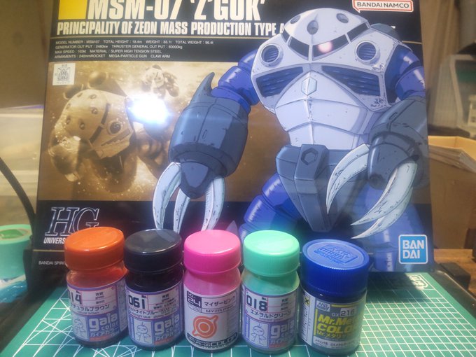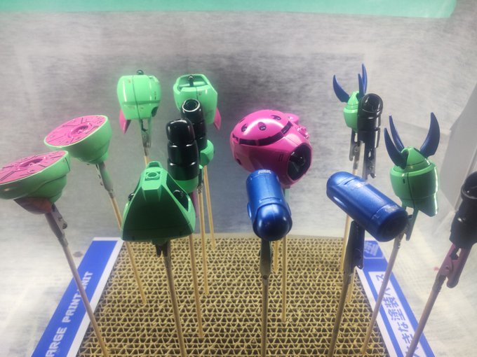 HG色ガチャズゴック4日目。 トップコートやっていきましょう。 持ち手付けて並べても、なんだこれ?w、という感想しか出てこない(*´ᗜ`*)アハハ #ガンプラ #ガンプラの画像貼るとRTされると聞いて