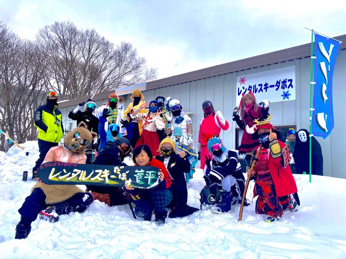 1 13 先日、地元の元気な高校生が、喜んでコスプレをして、ゲレンデに飛んでいきました‼︎元気いっぱいで、素晴らしい!こちらが元気をもらっちゃいました、、、(写真御本人様提供) #菅平高原スキー場 #表ダボス #コスプレ #レンタル #一期一会 22/03/04 20:13