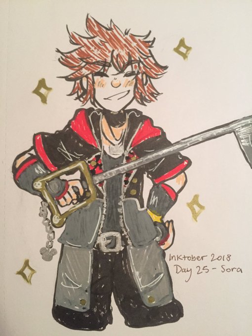 day 25 is sora from kingdom hearts!! i haven't played or seen much of kh but i love this boy !! #inktober #inktober2018