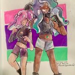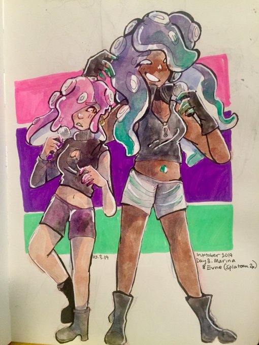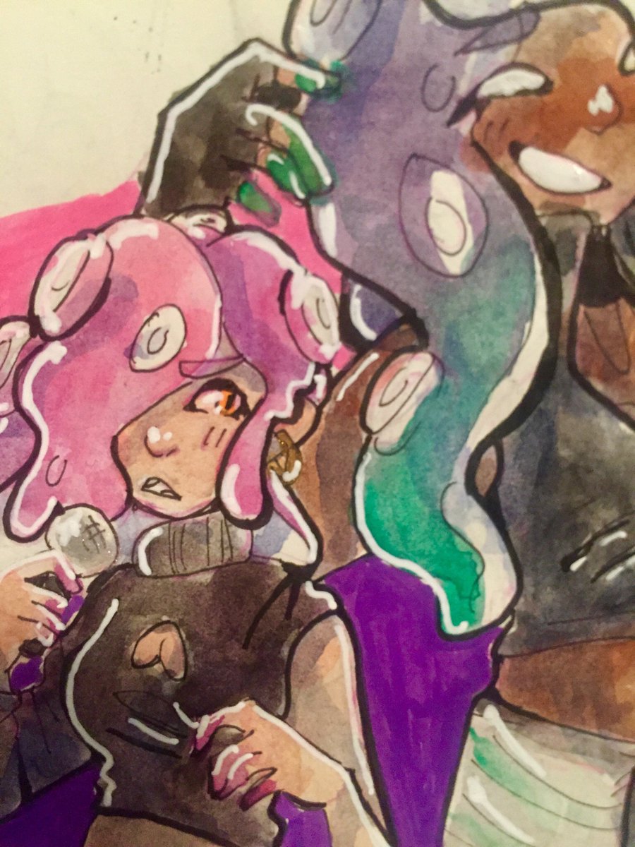 [#Splatoon2, #inktober2019] day 3 ! some octolings singing (i don’t really like how this came out but here)