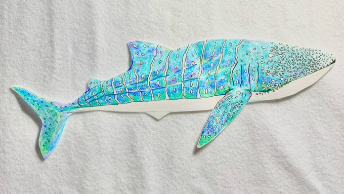 ジンベイザメ #whaleshark 先ほどのものにペン入れして模様をはっきりさせました。 #創活 #ArtistOnTwitter #絵描きさんと繫がりたい #絵描きさんと繋がりたい #絵描きさんとつながりたい