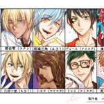 #フォロワーさんの推しが描きたい できました!!!!!! 密、古谷零、三角、デュース、清少納言 今吉、一成、レオナ、トレイ、翠、 山姥切国広 ありがとございました!