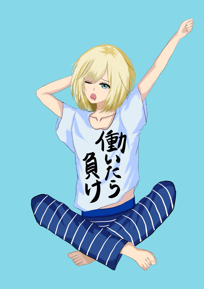 連日長時間配信感謝! 配信見ながら描いてた絵完成したー 一応ヤンキー座りw #キルシュトル展 #サムネ撮ルテ