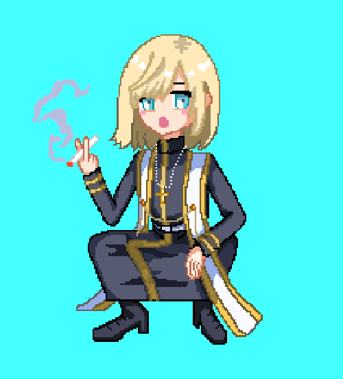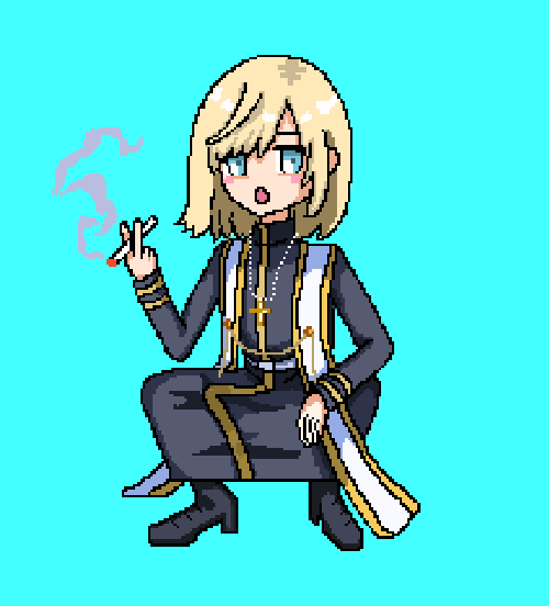 ドット絵?描いてみたけど…これただ線がガタガタなだけな気がするからドット絵なのかも謎…よくわからんけどせっかくだから載せとくw #キルシュトル展