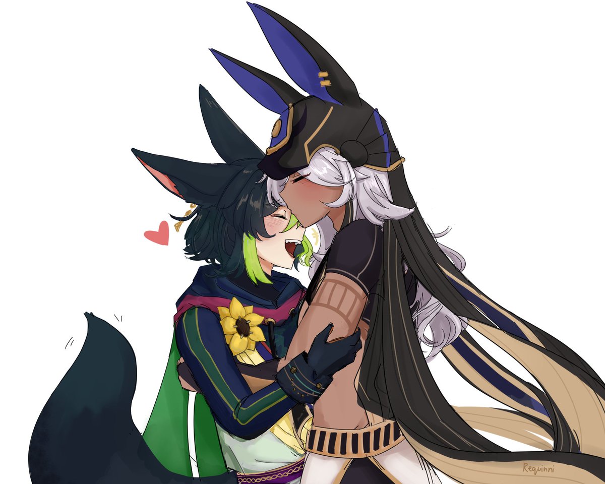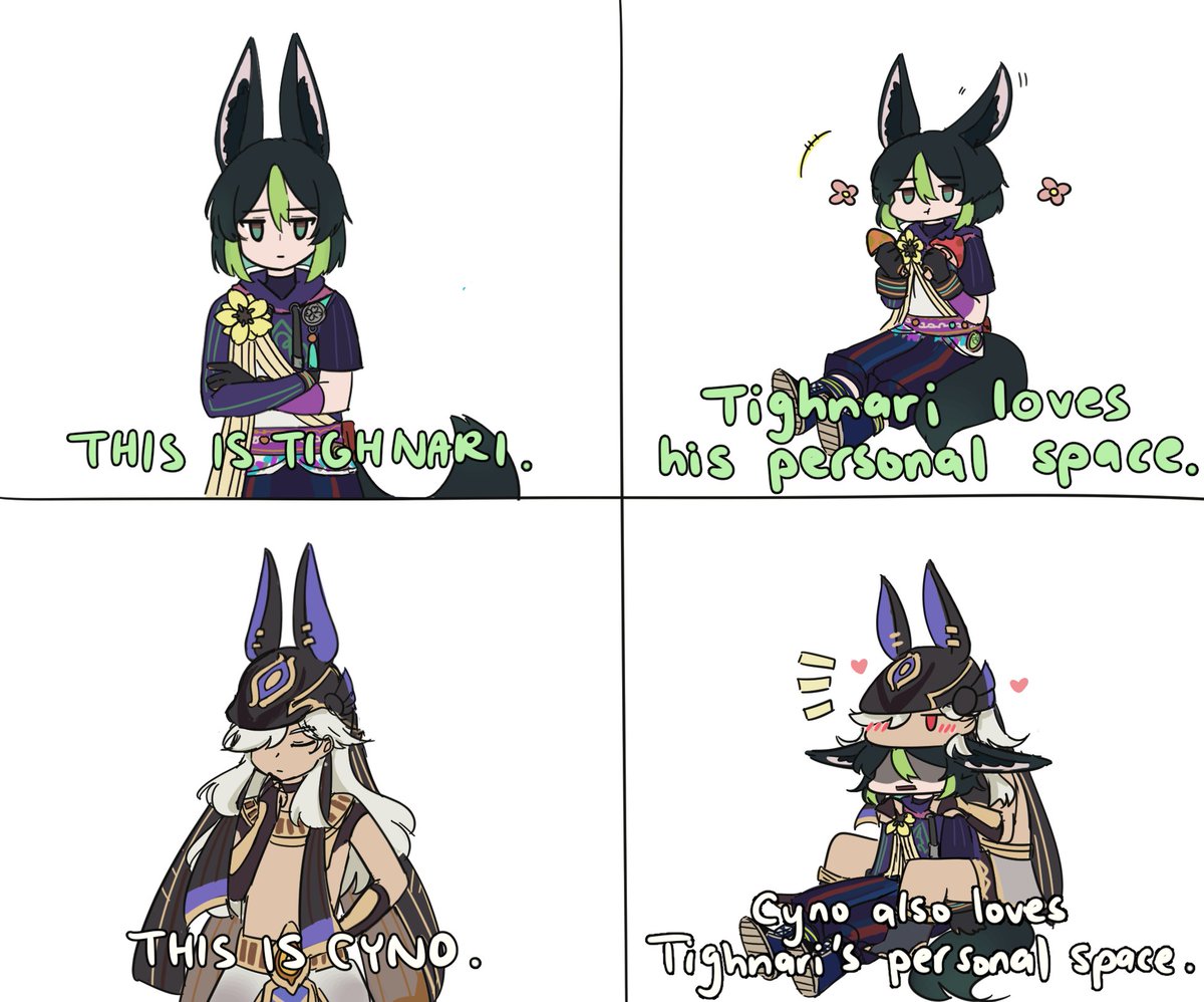 Whenever Cyno is brushing Tighnari's tail, he likes to tell him stories from his adventures in the desert. Tighnari enjoys this a lot 🥹🤲 #cynonari #Genshinlmpact