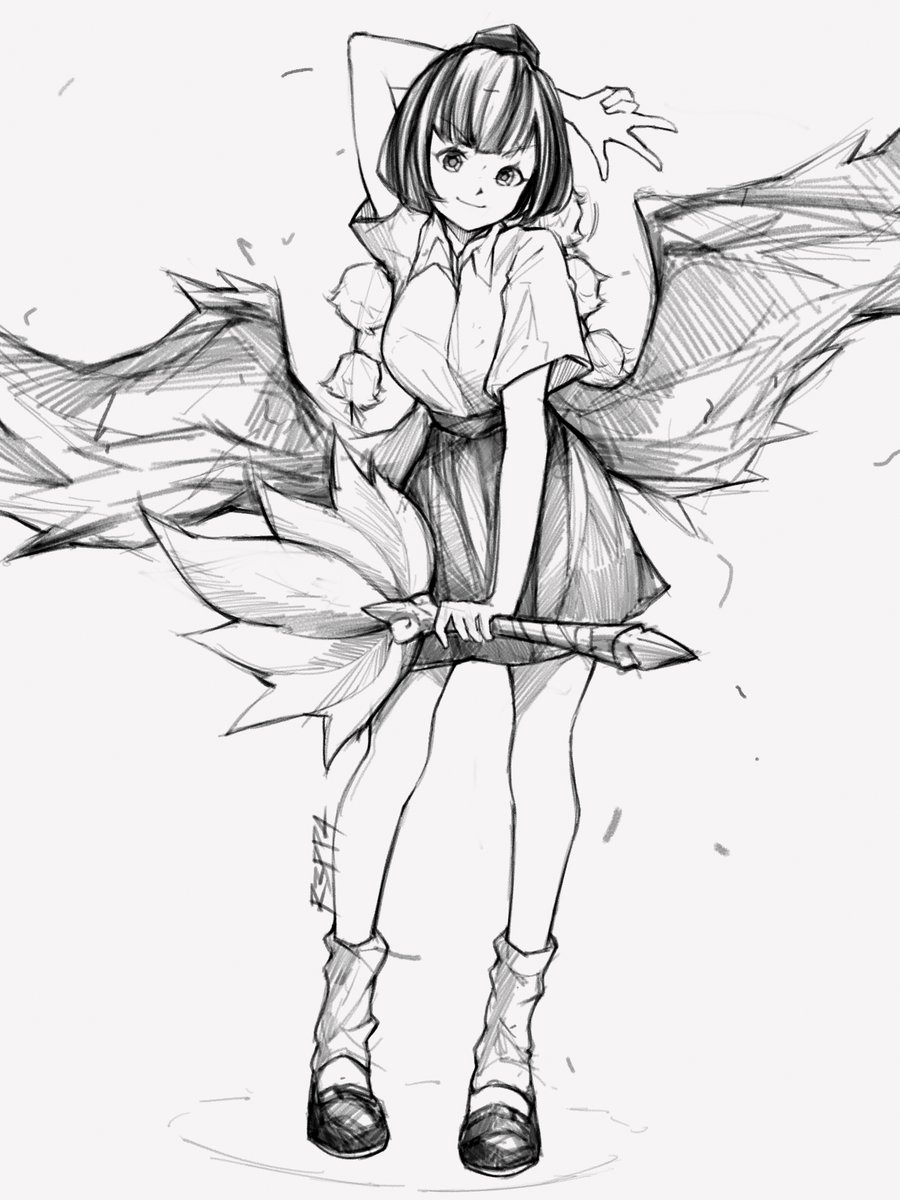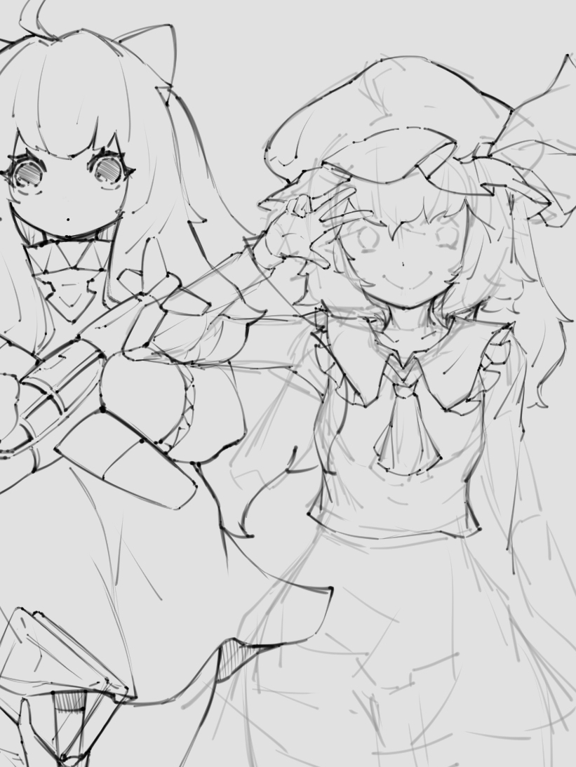 I really can't go for shading 🙏 It's more like a good experiment with anatomy and pose. Touhou, Touhou and a sudden Kancolle. XD #rkgk #touhou #touhouproject #東方project