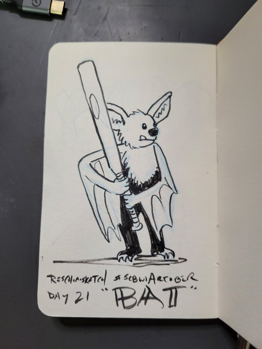 #scbwiartober day 21 "Bat" A bat with a bat, at bat. #scbwi #illustrators #inktober #inktober2022 #bat