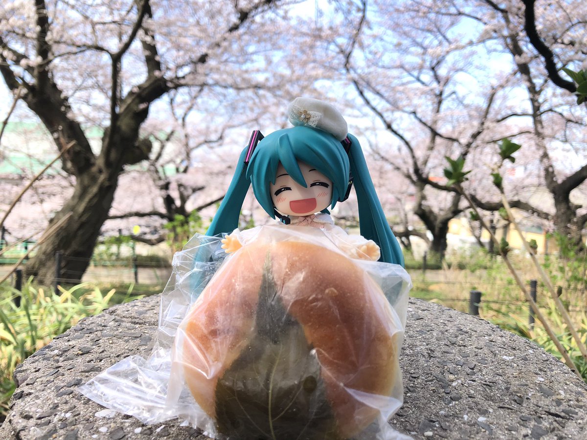 #深夜の初音ミク撮影60分一本勝負 2022年4月10日のお題【休日】 #深夜のねんどろ撮影60分一本勝負 2022年4月10日【ぴくにっく】 先々週、埼玉の権現堂にお出かけした時の写真。 桜もちパンだったかな? ミクさんも嬉しそう♪