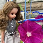 おはようございます(*´▽`)ノノ 娘氏の朝顔が綺麗に咲いてたので、イヴちゃんと(∩´∀`∩)💕✨ #おはドル #リカ活 #カスタムリカちゃん