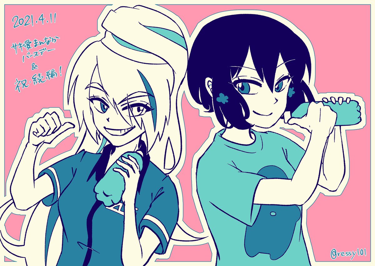 サキ愛ちゃん真ん中バースデー、らくがきのくせに遅刻しました!!!!🧡💙