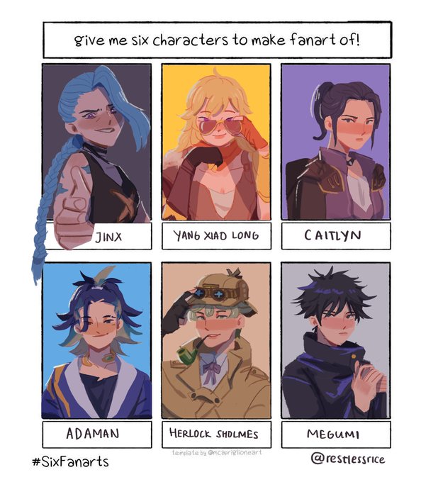 everyone stays inside the box except jinx, why bc she can. This is for the #SixFanartsChallenge awhile ago! Thank you everyone who did the submission 🌟