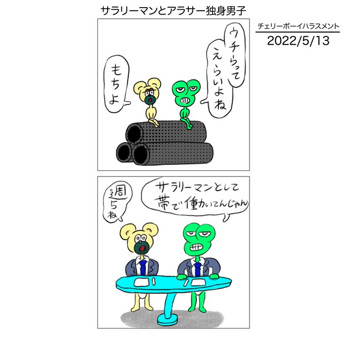 1 2 サラリーマンは帯の仕事。 パイプパークのチェリーボーイハラスメント #漫画が読めるハッシュタグ #サラリーマン 22/05/18 23:14