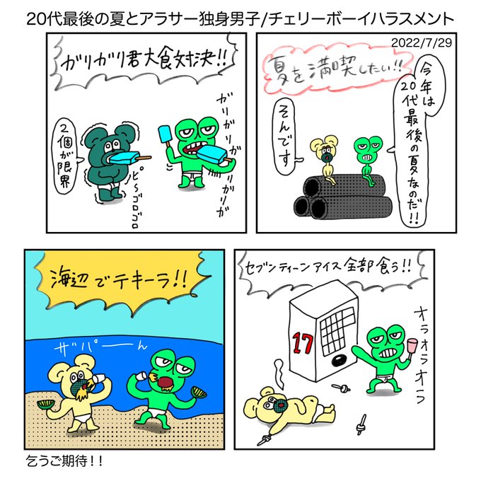 1 2 海辺でテキーラ!! パイプパークのチェリーボーイハラスメント #イラスト #漫画が読めるハッシュタグ twitter.com/retaro2020/s… 22/07/30 18:24