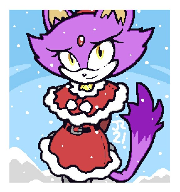 Got some last minute inspiration for a drawing last night. Thank goodness for that. For a few days I thought I wouldn't have anything holiday themed this year... Anyway, Merry Christmas, everyone! #SonicTheHedgehog #BlazeTheCat #Christmas2021 #pixelart
