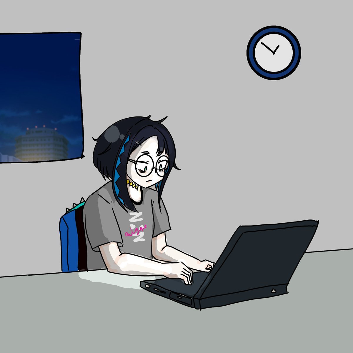 「技」術型となり深夜まで作業するミ氏 #凪波あーと #凪波あーと60分制作