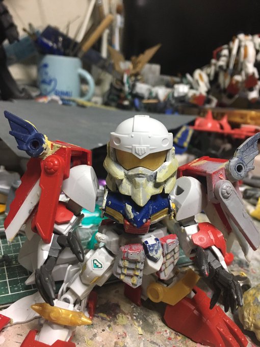 #俺SD作ってるぜ #SDガンダム #玖辺麗三姉妹 後もうちょっとだぜ! カロリーが僕には高過ぎました。